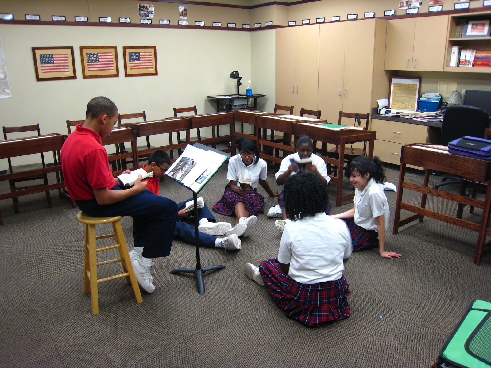 The other day, I stepped out to speak with another class about a discipline issue and was gone longer than expected. As a result, I was a full 7 or 8 minutes late to class. When I finally got to class, my heart leaped for joy at the sight of eighth graders governing themselves. Sure enough, they were sitting in a circle in the center of the room (as we often do for literature), and they were taking turns reading aloud from The Count of Monte Cristo and telling back what they read. One student had even taken his place on my teacher's stool (while that seat is normally off limits, under the circumstances I allowed it).